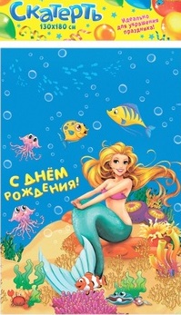 1023140 Скатерть "С Днем рождения! Русалочка". Размер 130 * 180 см.