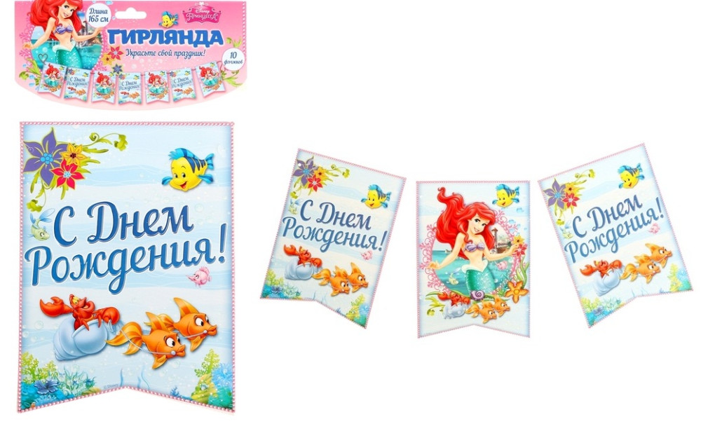 1282209 Гирлянда - вымпел "С Днем рождения! Русалочка" Длина 165 см.
