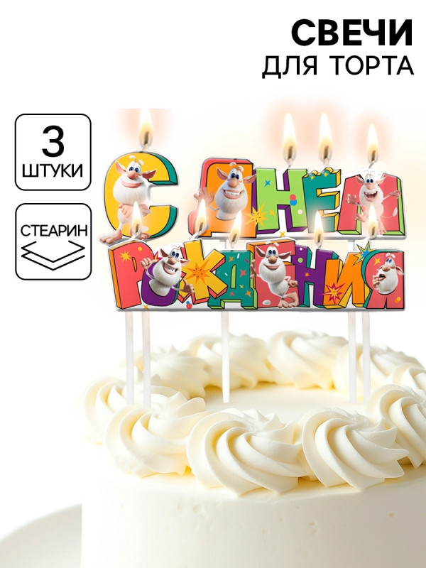 10948741 (ДБ 50911) Набор свечей в торт "С Днем рождения! Буба" (3 шт.) на шпажках