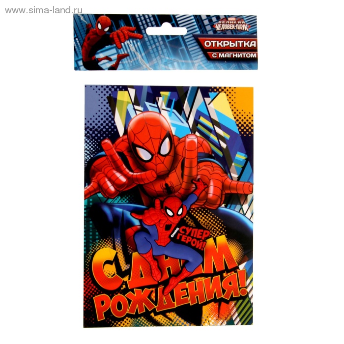 1184964 Открытка "Супер герой! Человек Паук" с резиновым магнитом