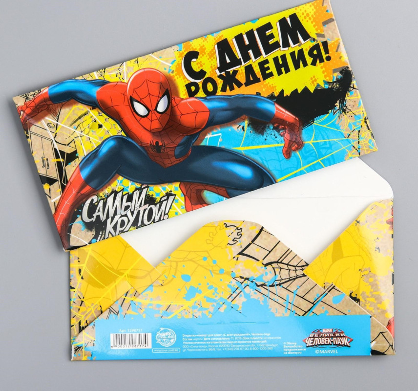 1298717 Конверт-открытка для денег " С Днем рождения! Человек Паук "