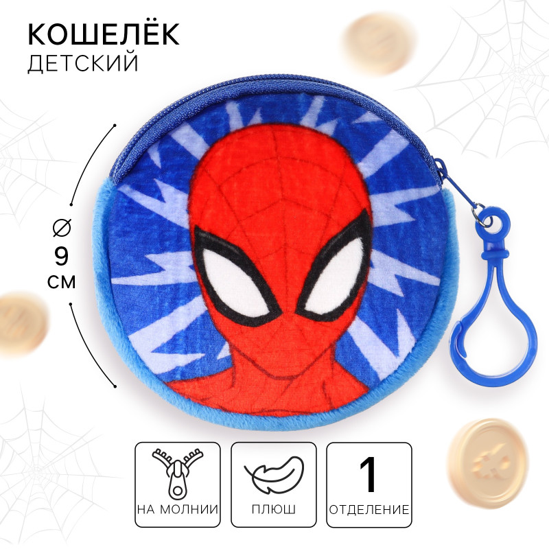 9720075 Кошелек синий круглый "Человек Паук" D 9 см. Текстиль