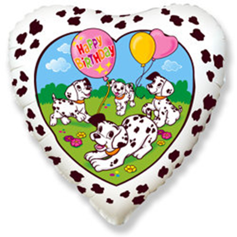 БР 201686/Б Белое фольгированное сердце" Happy Birthday! Далмантинцы" D 45 см. (с гелием)