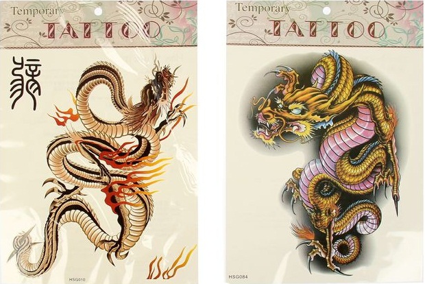 1202457 Татуировка на тело "Цветной дракон" Размер 21,5 * 30,5 см. Рисунок микс