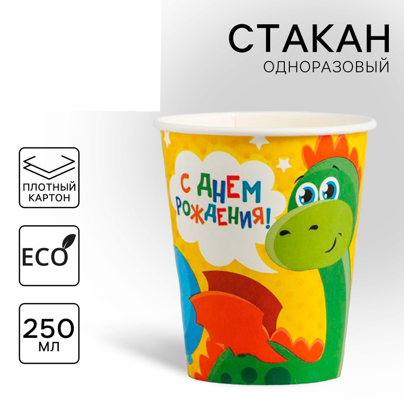 2844417 Набор стаканов "С Днем рождения! Динозаврик" (10 шт.)