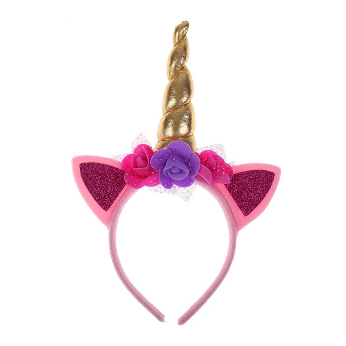 3028686 Карнавальный ободок "Розо-фукси единорог большой с цветами"