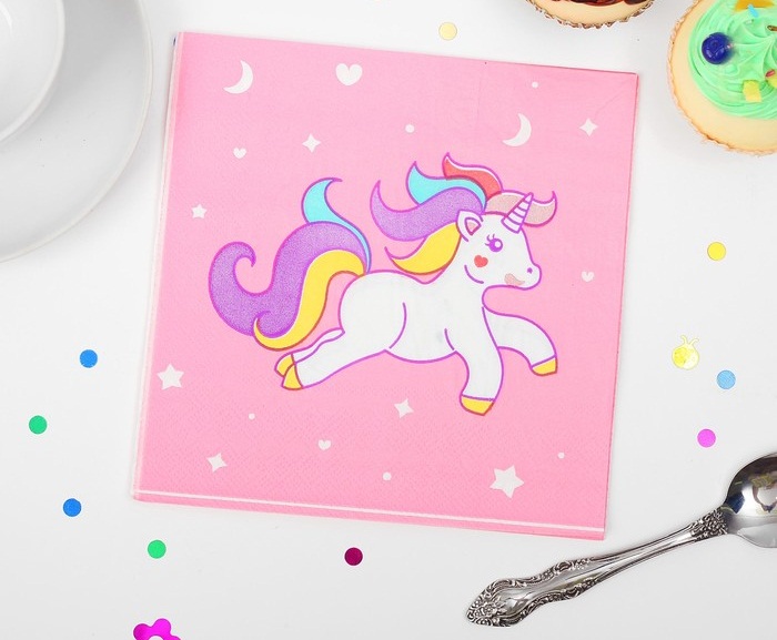 3536874 Набор салфеток "Единорог на розовом фоне" (20 шт.) Размер 33*33 см.