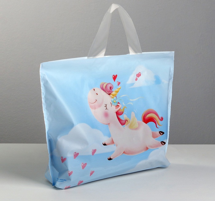 3795682 Пакет гориз. "Единорог" с петлевой ручкой. Размер 35 * 25 см.