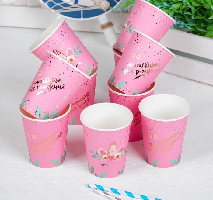 3894955 Набор розовых стаканов "Волшебного дня рождения! Единорог" (10 шт.)