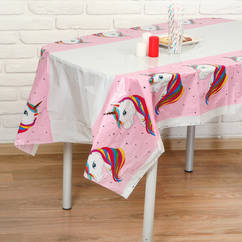 4291895 Скатерть розовая "Единорог" Размер 108 х 180 см.