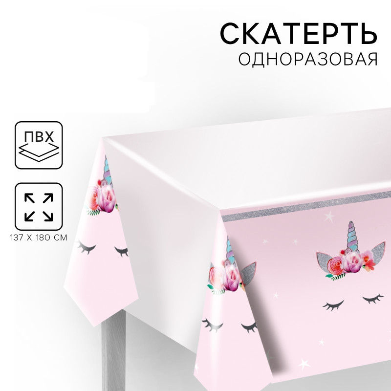 4599905 Скатерть розовая "Милый единорог" Размер 137 х 180 см.