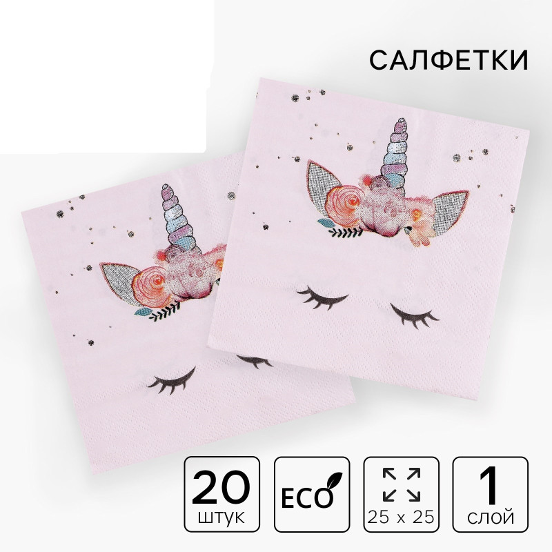 4669373 Набор розовых салфеток "Единорог" (20 шт.) Размер 25 х 25 см.