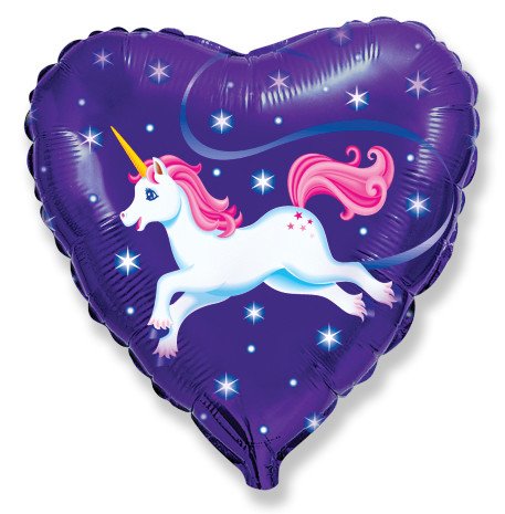 БР 201655 Фольгированное сердце "Летающий единорог" D 48 см. (с гелием)