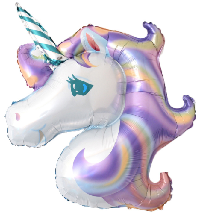 Ч 15236 Фольгированная фигура "Голова единорога фиолетового" Размер 79 * 101 см. (с гелием)