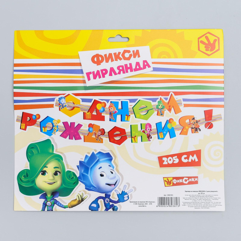 2480381 Гирлянда на люверсах "С Днем рождения! Фиксики" Длина 205 см.