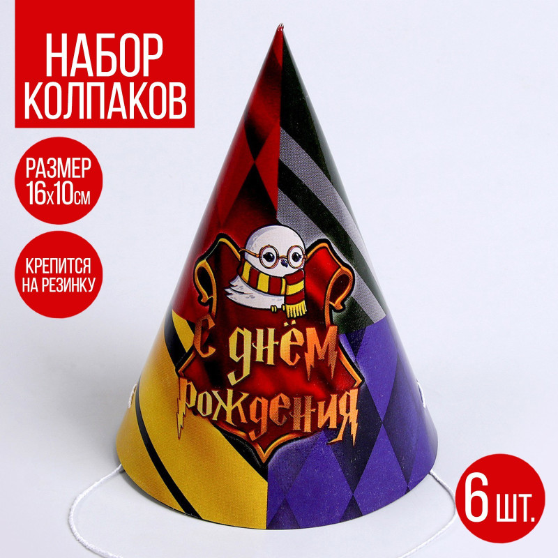 9559028 Набор колпаков "Гарри Поттер: С Днем рождения!" Высота 15 см. (6 шт.)