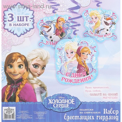 1142719 Набор блестящих гирлянд - спиралей " С Днем рождения! Холодное сердце" (3 шт.)