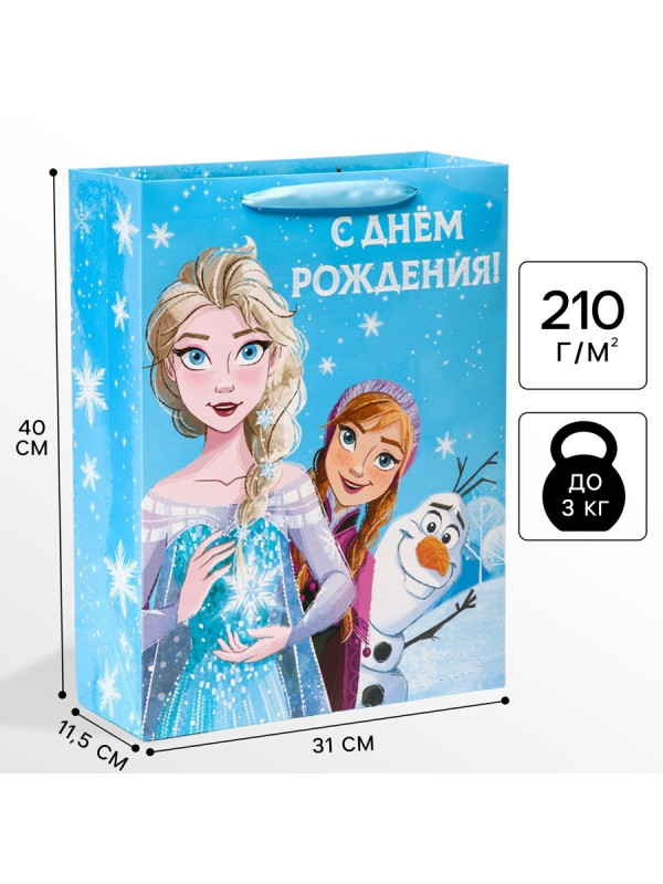 7153513 Пакет голубой "Холодное сердце: С Днем рождения!" Размер 31 х 40 см. Вертикальный