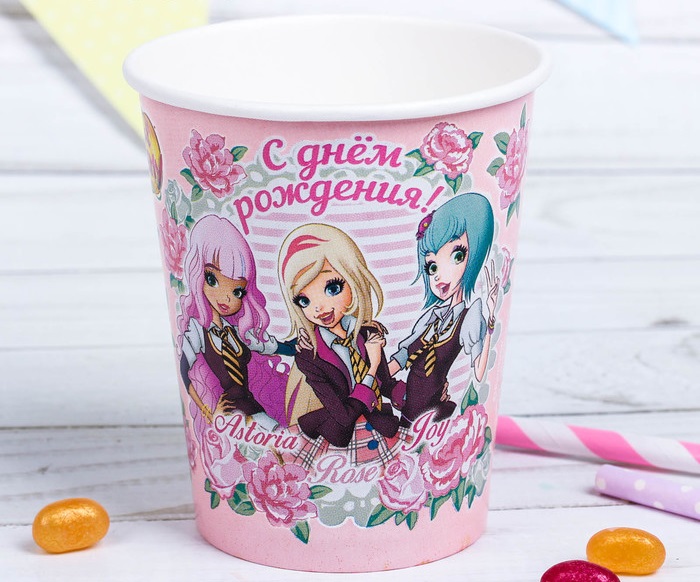 2873049 Набор розовых стаканов "С Днем рождения! Королевская академия" (10 шт.)