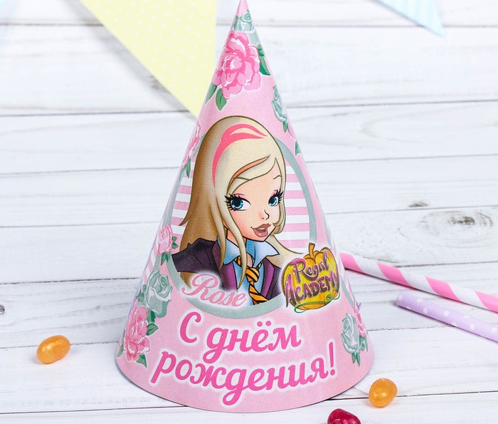 2873051 Набор розовых колпаков "С Днем рождения! Королевская академия" (10 шт.)