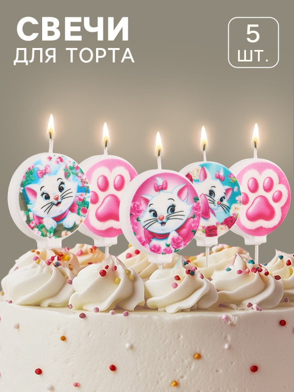 10971309 Набор свечей в торт "Кошка Мэри" (5 шт.) на шпажках