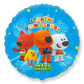 ФМ 411505 Голубой фольгированный круг"С Днем рождения! Ми-ми-мишки" D 45 см. Испания (с гелием)