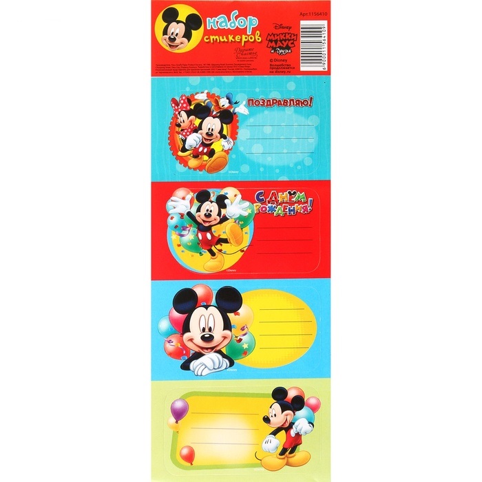 1156410 Набор стикеров "Микки Маус и его друзья.С Днем рождения!" (4 шт.) Размер 7 * 16 см.