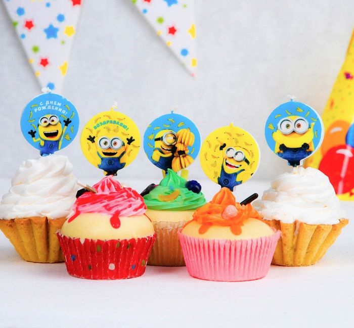 4127141 Набор свечей в торт "С Днем рождения! Миньоны" (5 шт.) на палочках
