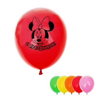 1175586/1 Шарик 1-сторонний "С Праздником! Минни Маус" D 30 см. (с гелием)