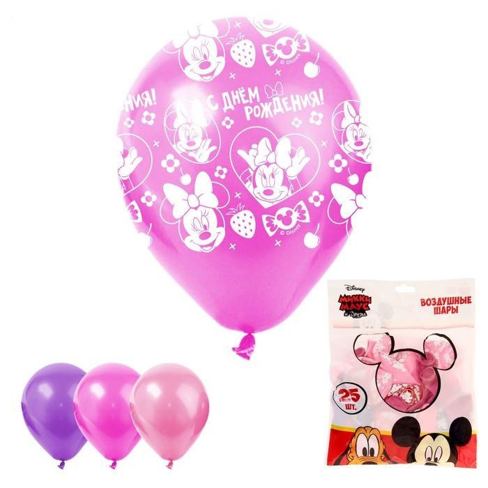 1442450 Шарик 5-сторонний " С Днем рождения! Минни Маус" D 30 см. (с гелием)