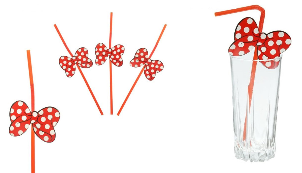 1499711 Набор трубочек "Красный бантик в белый горох" ( 6 шт.) для коктейля