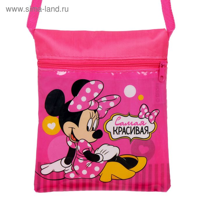 1788392 Сумочка тканевая "Самая красивая.Минни Маус" на ремешке. Размер 14* 17 см.