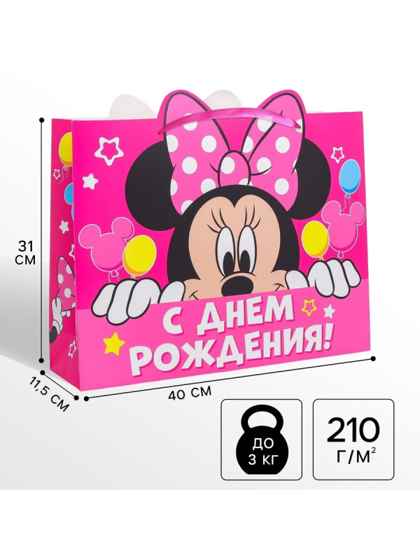 7153517 Пакет малиновый "Минни Маус: С Днем рождения!" Размер 40 х 31 см. Горизонтальный