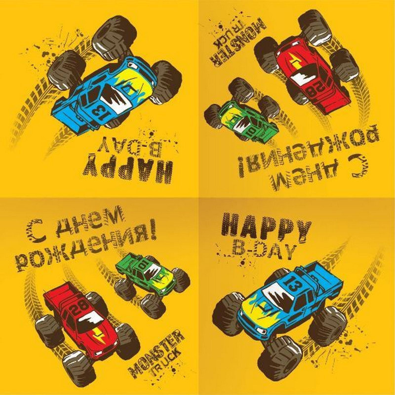 10201081 (МФ 6078966) Набор салфеток "С Днем рождения! Монстер Трак" Размер 33 х 33 см. (12 шт.)