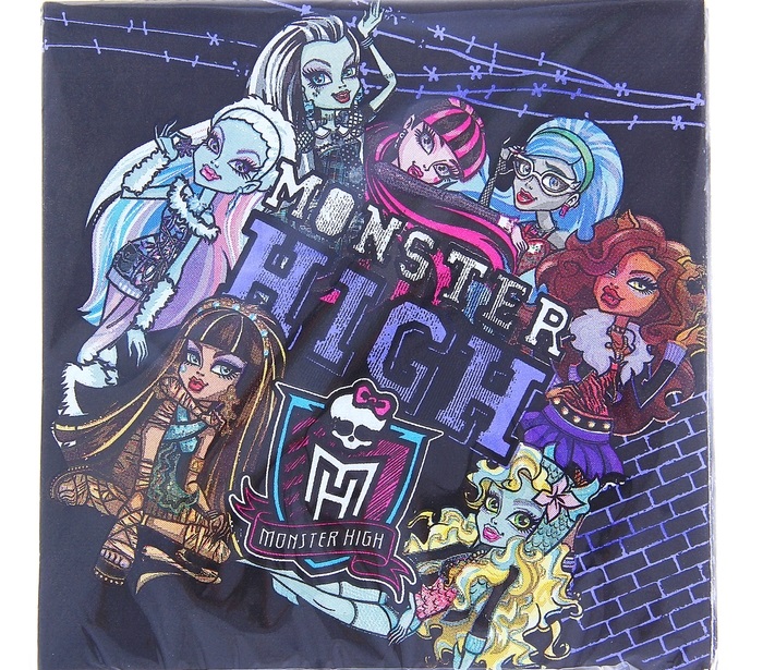 1108068 (26416) Набор черных салфеток "Монстры Хай: Граффити" (20 шт.) Размер 33 * 33 см.