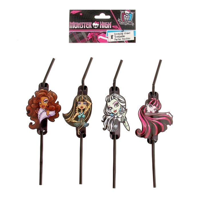 1332264 (1502-1333) Набор черных трубочек для коктейлей "Монстры Хай: Граффити" (8 шт.)