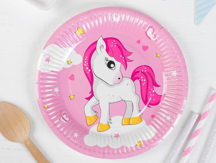 3968729 Набор розовых тарелок "Пони" (10 шт.) Диаметр 18 см.