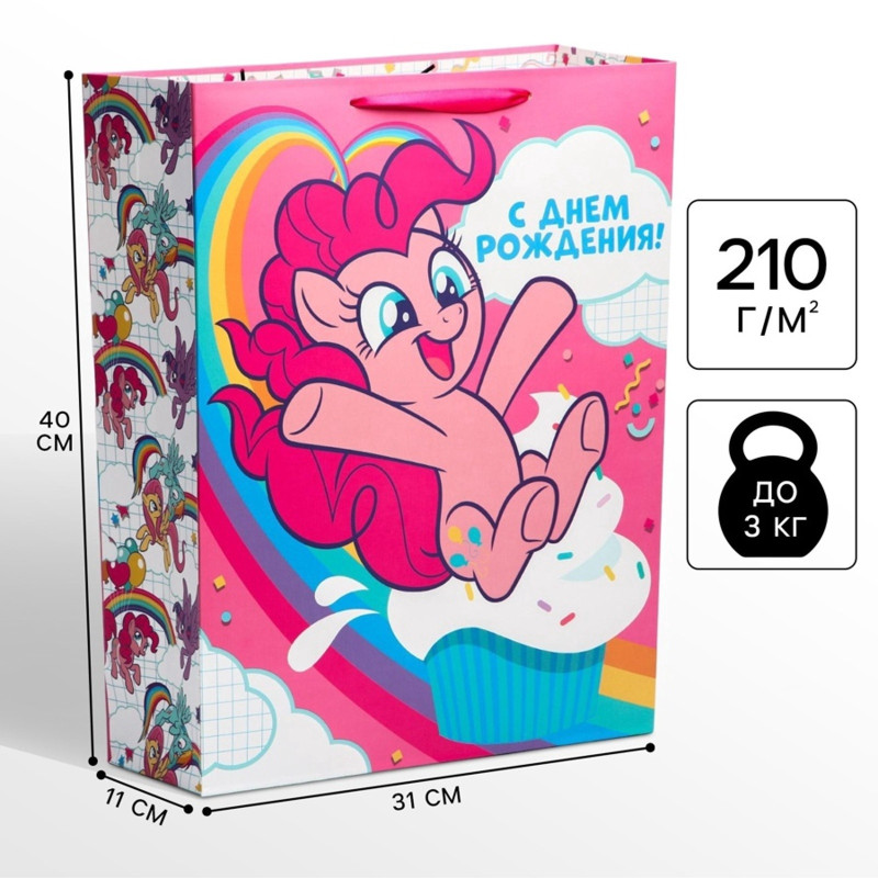 5271812 Пакет розовый "My little Pony:С Днем рождения!" Размер 31 х 40 см. Вертикальный