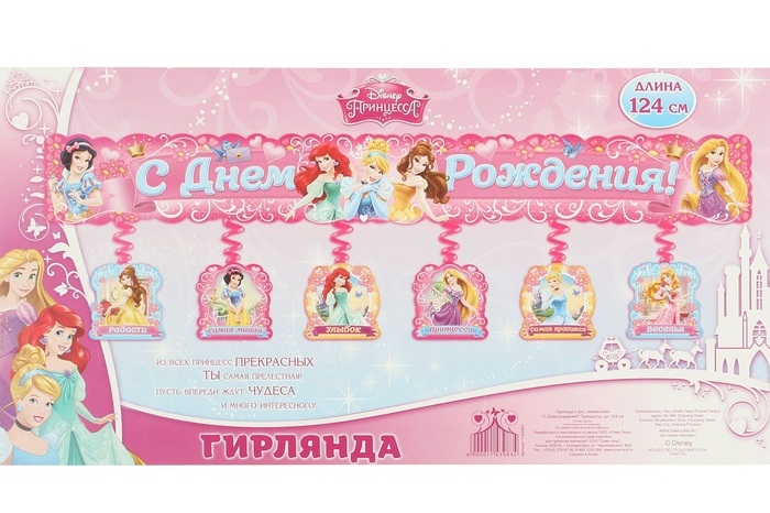 1143983 Гирлянда с подвесами на спиралях "С Днем рождения! Принцессы" Длина 125 см.