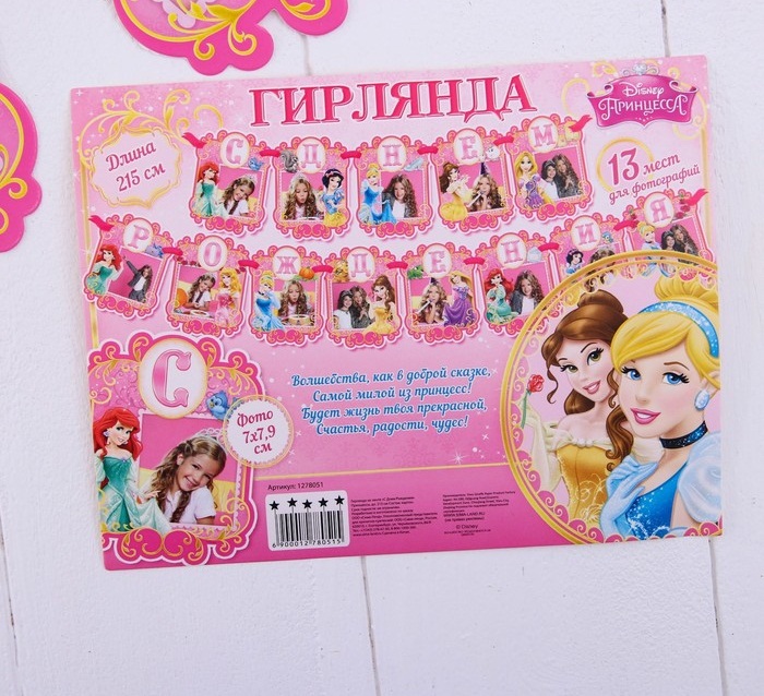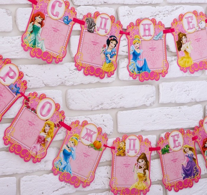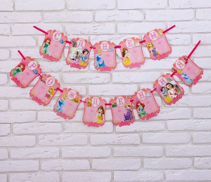1278051 Гирлянда на ленте под фото "С Днем рождения! Принцессы Дисней" Длина 215 см.