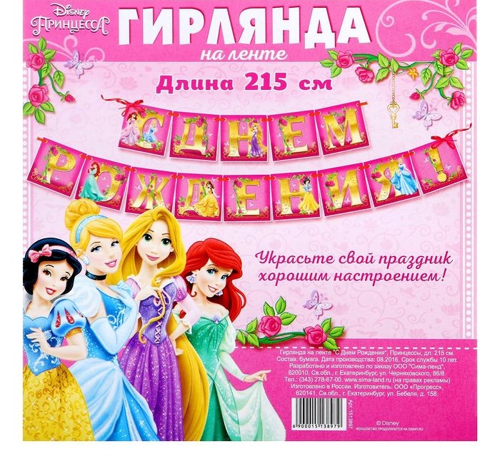 1513897 Гирлянда на ленте "С Днем рождения! Принцессы" Длина 215 см.
