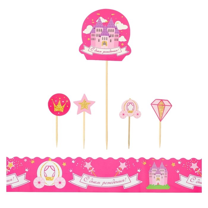 2789893 Набор для украшения торта "Принцесса": Ободок для торта, топпер, шпажки (6 шт.)