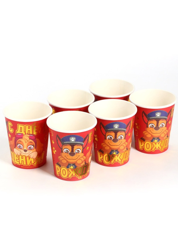 10139411 Набор стаканов с тиснением "С Днем рождения! Щенячий патруль" (6 шт.)