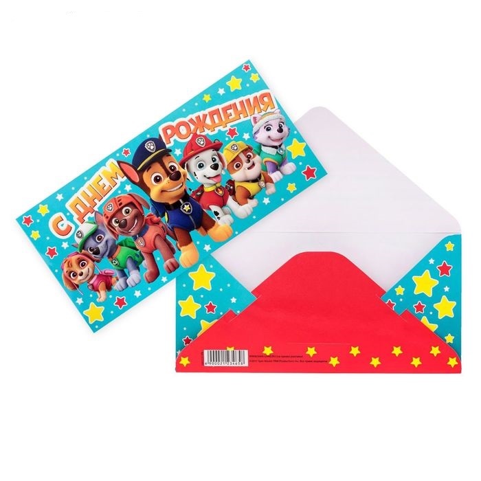 2123465 Детский конверт для денег "С Днем рождения! Щенячий патруль"