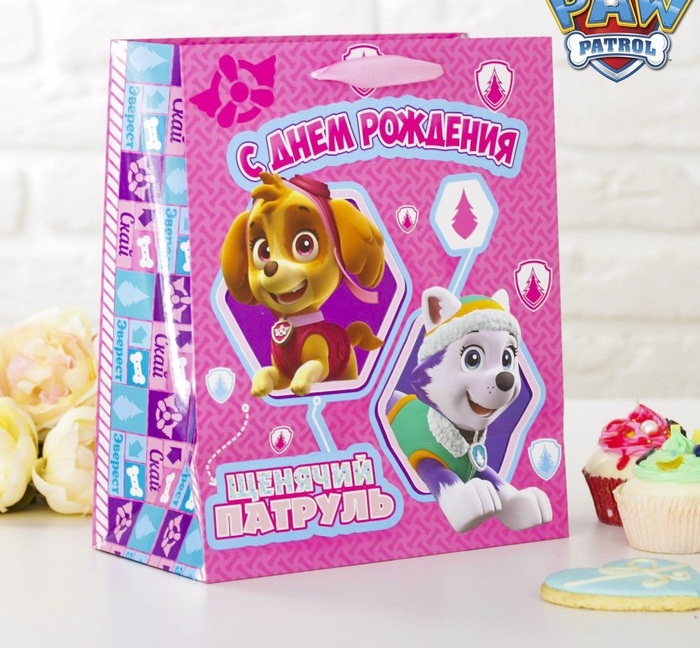2156475 Пакет розовый "С Днем рождения! Щенячий патруль: Скай" Размер 31 х 40 см. Вертикальный