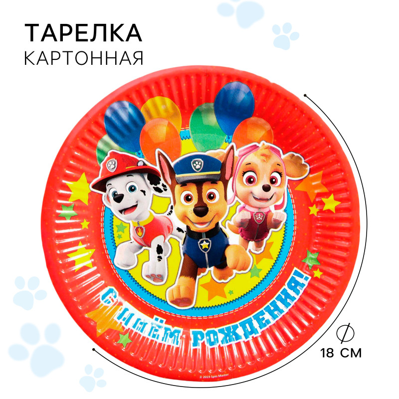 4265730/6 Набор красных тарелок "Щенячий патруль: С Днем рождения!" (6 шт.) D 18 см.