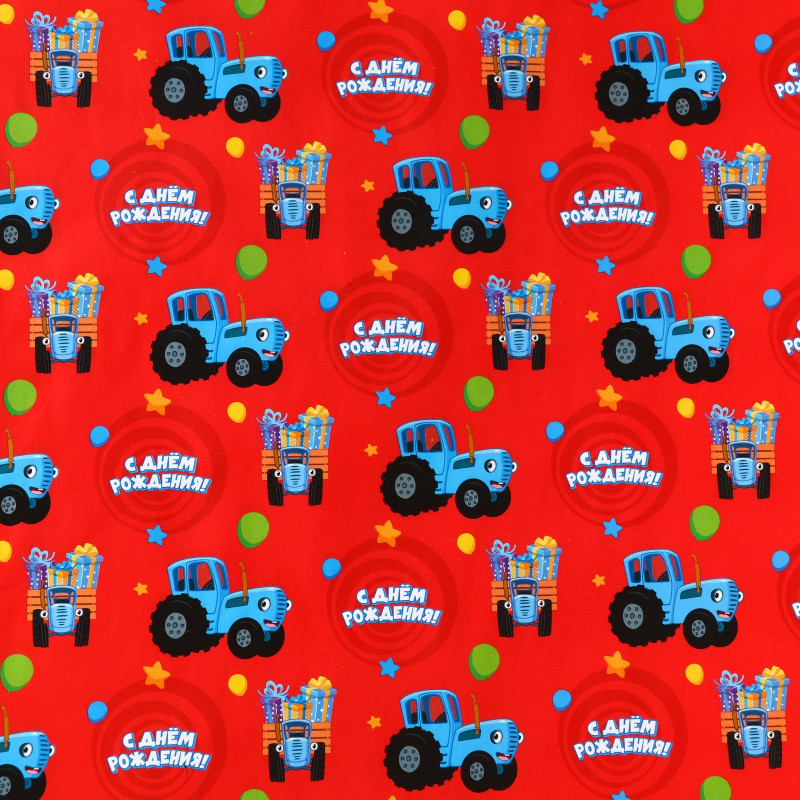 9241831 Глянцевая упаковочная бумага "С Днем рождения! Синий трактор" Размер 70 х 100 см.