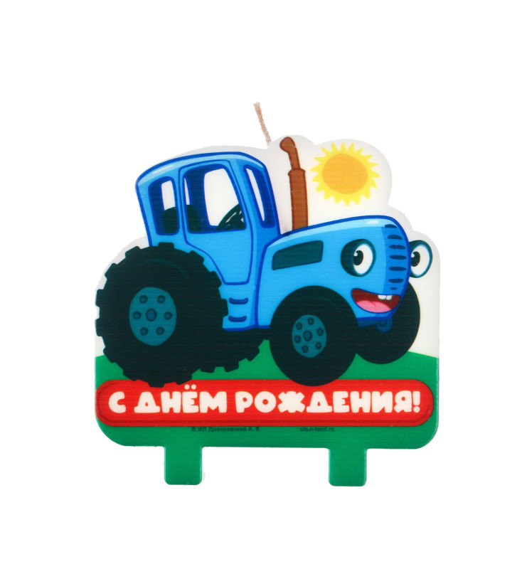 9714003 Свеча для торта "С Днем рождения! Синий трактор"