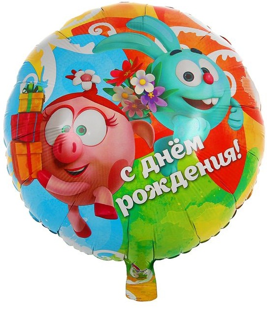 AN 1202-2057 Фольгированное круг "С Днем рождения! Смешарики" D 45 см. США (с гелием)