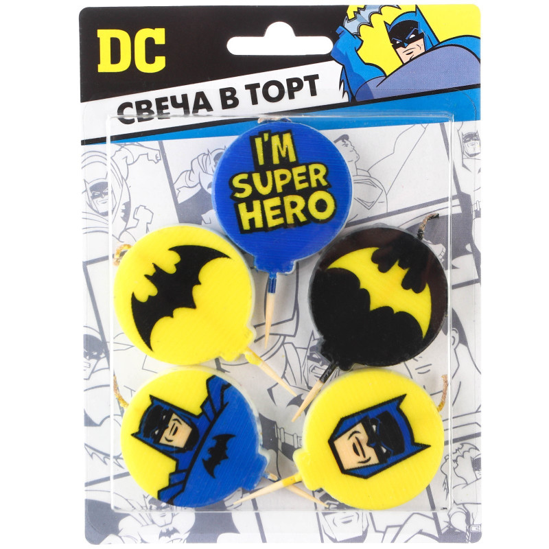 9714007 Набор свечей для торта "Я супер герой! Бэтмен" (5 шт.) на шпажках